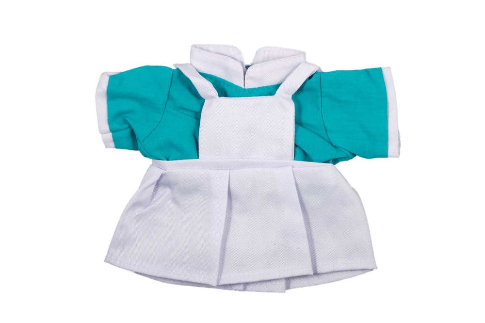 What better way to convalesce than a small plush toy that can conjure up a smile on faces? Of course, a plushy nurse's gorge, which takes care and ensures that the patient gets well again quickly. The outfit includes a petrol-colored blouse, a white dress and the typical white nurse hood.