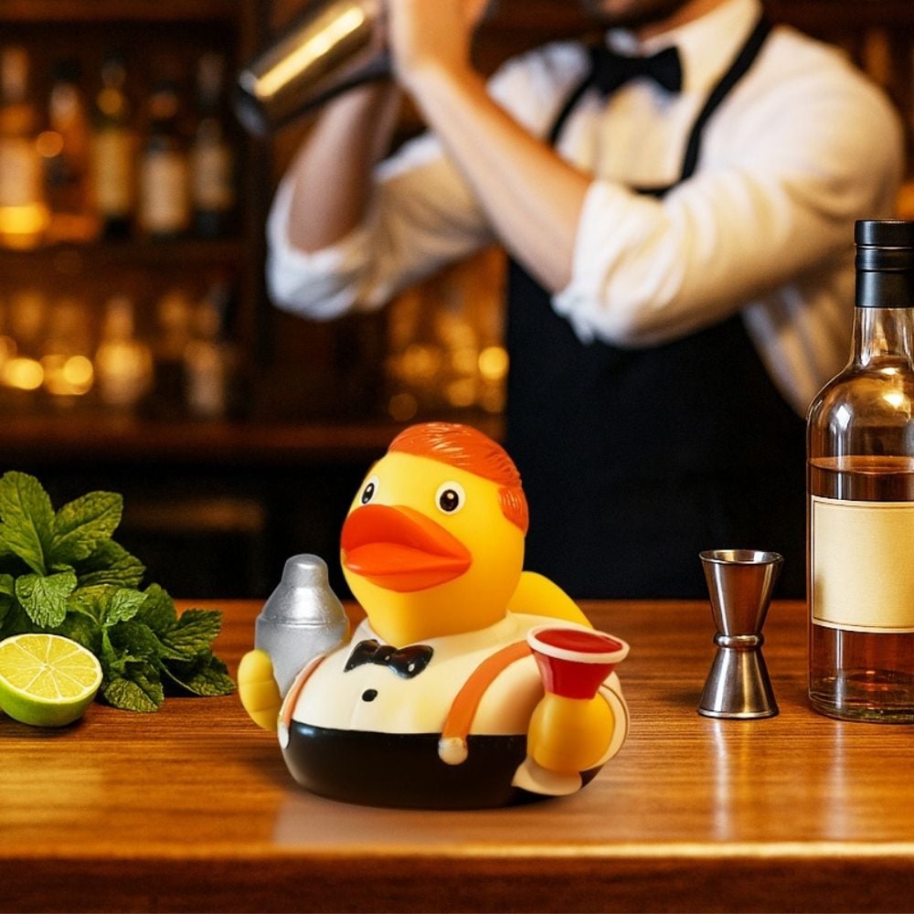With its charming look, the Schnabels® squeaky duck barkeeper spreads good cheer in any setting. Whether perched on the bathroom edge, sitting on a desk, or given as a gift – it impresses with its stylish appearance. Holding a cocktail shaker, it brings a smile to every face and becomes a unique promotional ambassador with a custom logo or slogan, leaving a lasting impression.