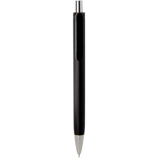 Le stylo bille Feld avec finition métallique allie la fonctionnalité pour une utilisation quotidienne à un look élégant. Fabriqué en plastique ABS recyclé certifié RCS, il présente une finition métallique brillante avec des détails chromés polis. Son mécanisme à simple pression souple et son système de recharge d’encre semi-gel garantissent une expérience d’écriture confortable et fluide. Couleur de l’encre : noir. Longueur d'écriture : 500 m. Taille de la pointe : 0,7 mm.
