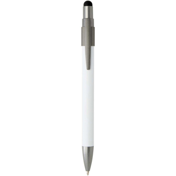 Stylo bille avec stylet et hand spinner, alliant praticité et design ludique. Le stylo est fabriqué à partir d’aluminium recyclé certifié RCS et dispose d’un mécanisme à poussoir souple et d’une pointe de stylet pour une utilisation sur écran tactile. Un hand spinner intégré sur le dessus ajoute une touche anti-stress (il suffit d’une pichenette pour le faire tourner). Couleur de l’encre : bleue. Longueur d'écriture : 1000 mètres.