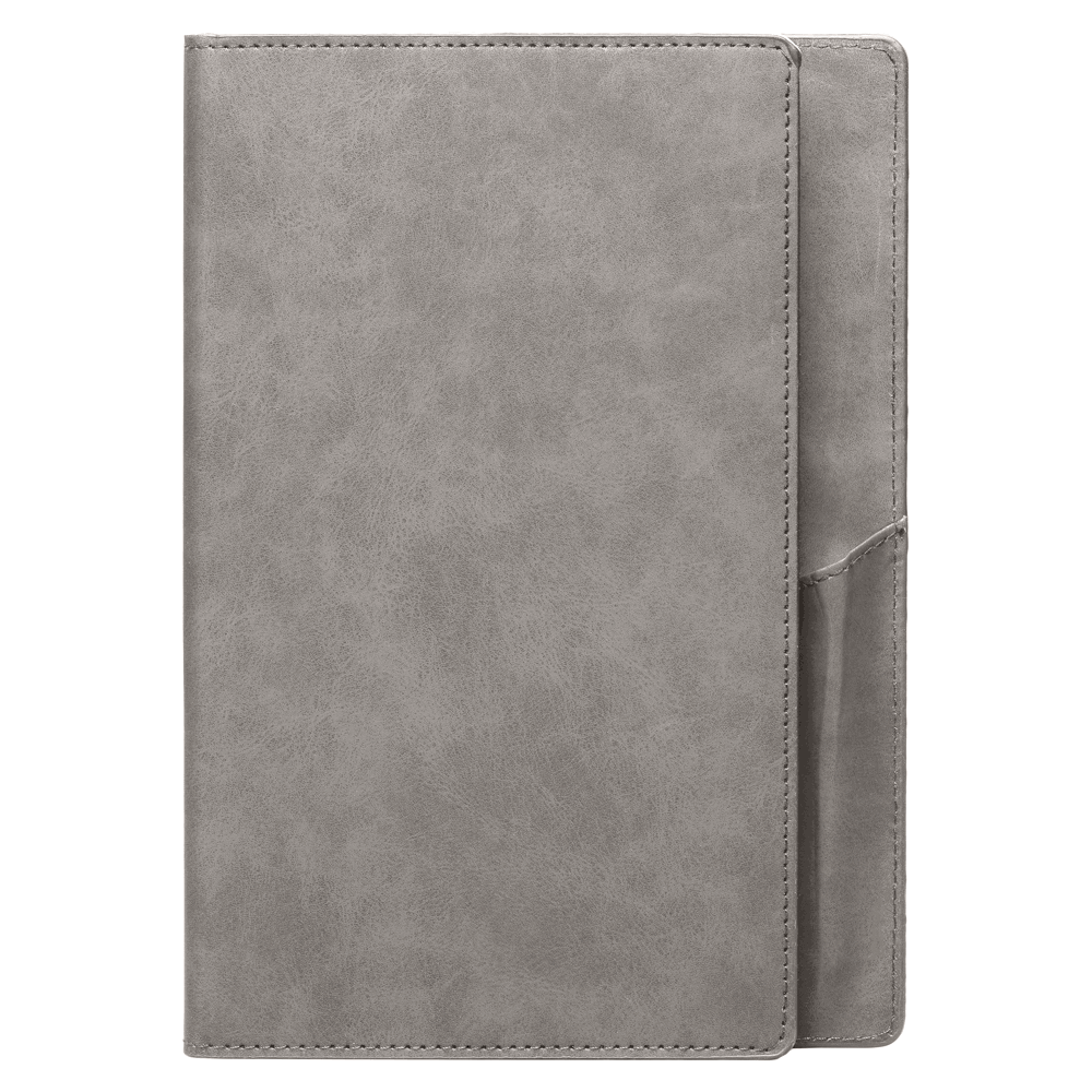**Coming soon – Late March** Presenting the Memento Journal, a sophisticated companion for notes and reflections. This journal features a refillable A5-sized hardcover crafted from PU (polyurethane), offering a luxuriously soft sueded feel. The practical design includes an extended back cover that seamlessly integrates a pen loop to keep a writing instrument secured. Inside, the journal holds an A5 notebook insert containing 96 sheets (192 pages) of smooth, 70gsm FSC® lined white paper. Sourced via responsible forestry, this paper provides a quality canvas for all writing needs, while the refillable cover makes this a lasting item for daily use.