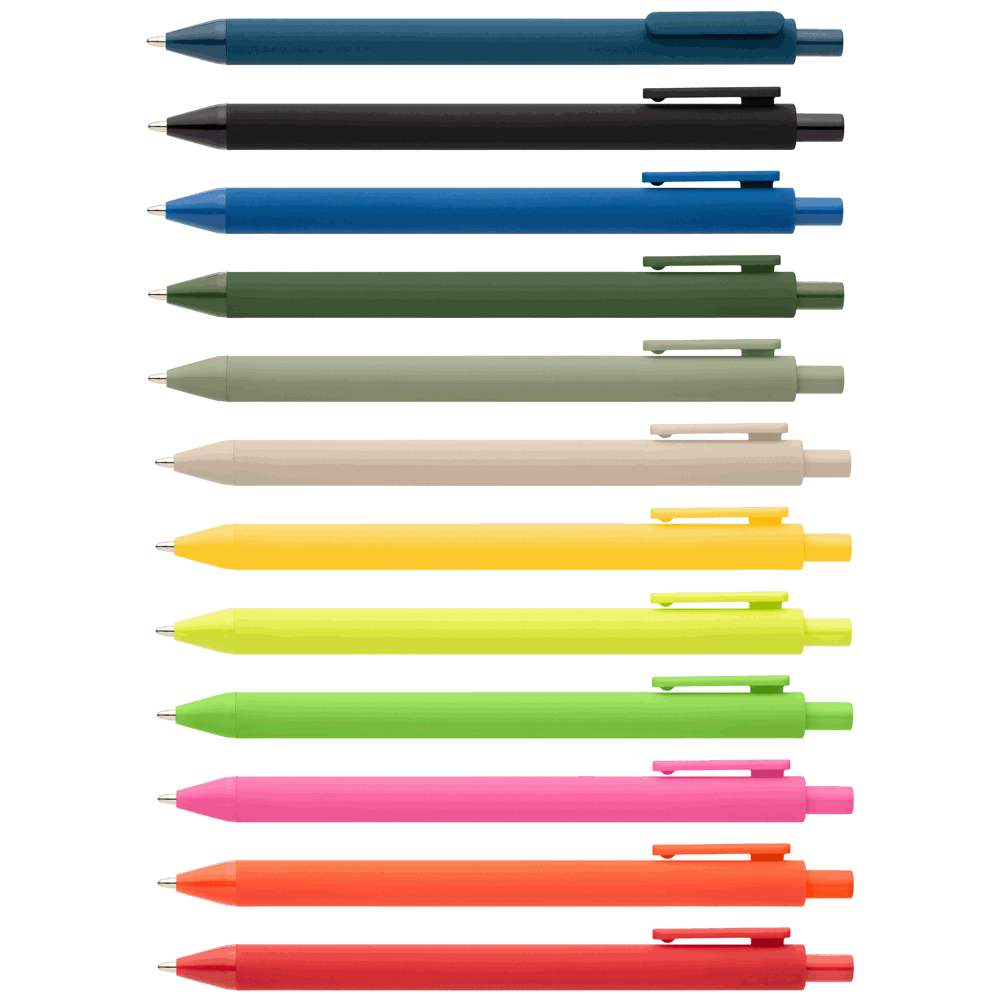 **Coming soon – Late March** The Bloom is a comfortable and value-friendly writing choice. This retractable ballpoint pen is constructed with a barrel and plunger made from recycled ABS plastic (rABS), offering a more mindful material option. The barrel is finished with a smooth painted rubber soft-touch coating, providing a comfortable and reliable grip. The pen features a matching coloured plastic tip and plunger. It is supplied with a slim black ink ballpoint refill that features a 1.0  mm tip and provides a generous 500 metre write out, ensuring long-lasting performance. The Bloom pen combines a pleasant feel and smooth writing with a wide variety of colour options.