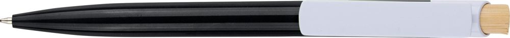 Stylo-bille en ABS recyclé avec bouton-poussoir en bambou et clip blanc. Logo recyclé intégré au...plus