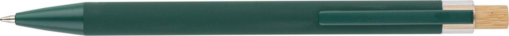 Stylo-bille en aluminium recyclé avec bouton-poussoir en bambou et finition en plastique AS. Clip en métal et pointe en plastique, tous deux de couleurs assorties. Logo recyclé gravé au laser sur le corps. Longueur d'écriture approximative de 800 mètres. Encre bleue.