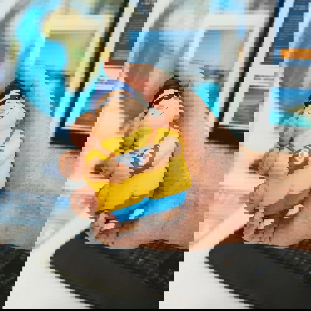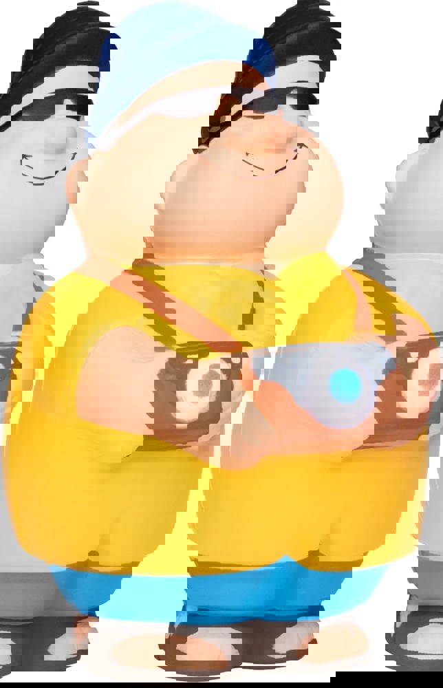 Mr. Bert® as a tourist - in sandals, with a fishing hat and sunglasses he is perfectly equipped to explore all the beautiful spots of the world and helps you to reduce stress! Of course, he always has his camera with him for the best holiday snapshots. Who could be stressed with so much holiday feeling? Simply squeeze Touri Bert® to reduce stress. Due to the material's properties, the product returns to its original shape.