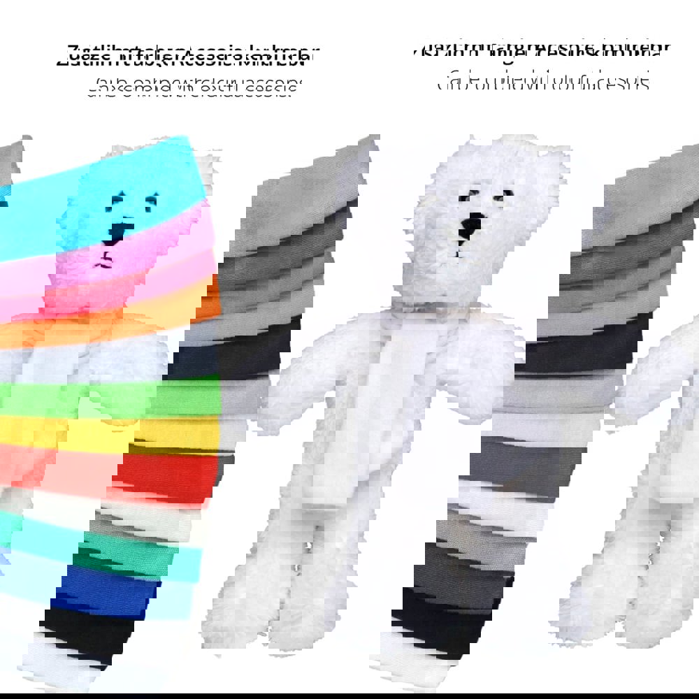 The bear is a cute, cuddly teddy. It is made of a kind of cuddly plush and also its snout is not posed, but from a part with the whole face - so it has a very distinctive face with re-recognition and because both his pop and his feet are weighted, he also stretches out As well as sitting a super figure. This soft plush bear is certified according to OEKO-TEX® Standard 100 and can be washed up to 60°.