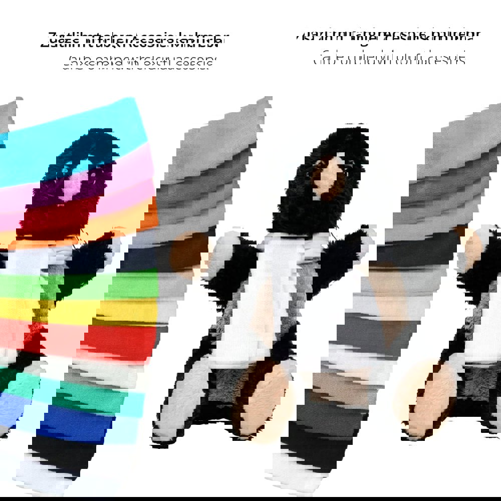 Our mole, Leve, with his black coat and gray belly, the beige hands, feet and snout to cuddle up. And do not worry, he will not leave any hills in your garden, he just wants to cuddle and, thanks to the plush soft plush, is a funny little fellow who likes to cuddle and cuddle. Leve is part of the fun animal parade.
