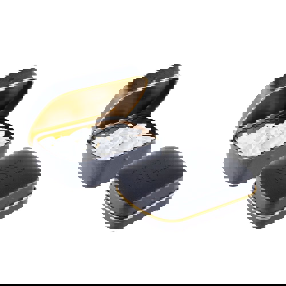 Mini hinge tin frosted dark blue with gold interior and approx. 23 grams of peppermint. And featuring embossing. Includes ingredient sticker and seal.