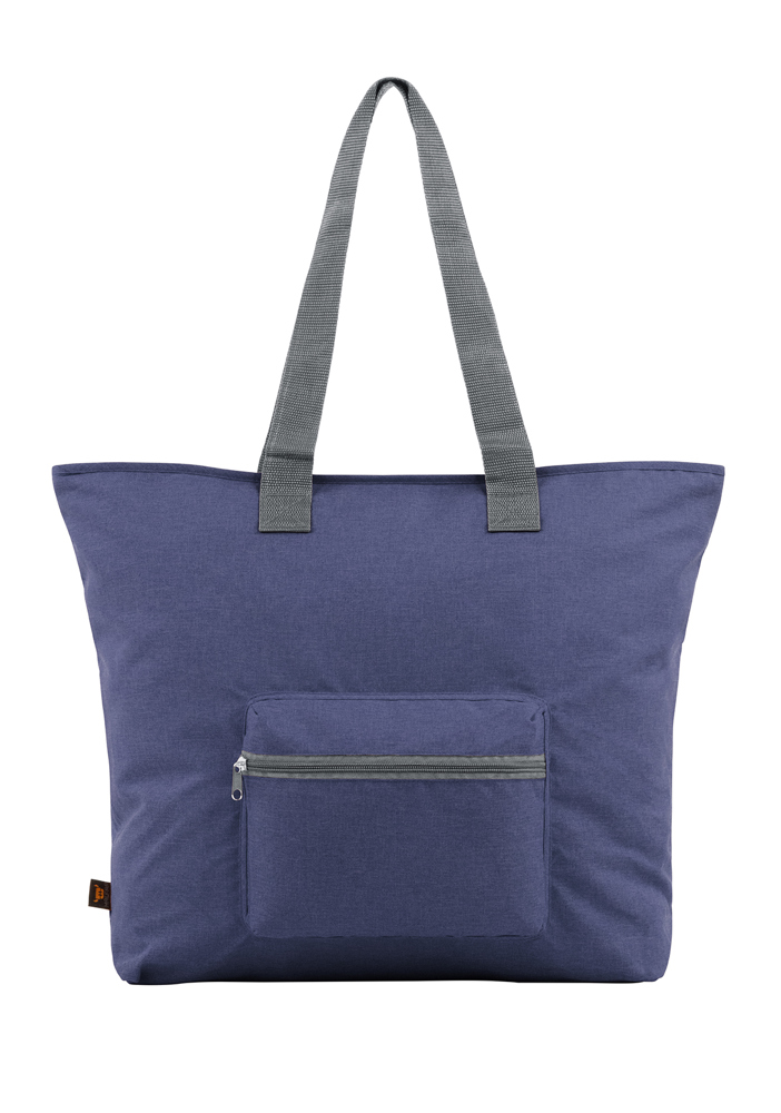 large shopper; spacious main compartment with zipper; front zipper pocket; inside zipper pocket; long carrying handles; folding and stowing function