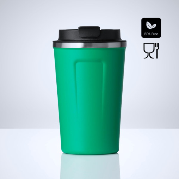 The Nordic thermal mug with excellent thermal insulation capabilities (up to 12 hours low temperature, up to 6 hours high temperature). Fits comfortably in the hand through the use of matt powder coating and ergonomic design. Double wall made of extremely durable Korean POSCO 18/8 stainless steel, powder coated for a safe hold. The mug is 100% BPA-free certified, leak-proof lid, and silicone base. Fits into car coffee dispensers.