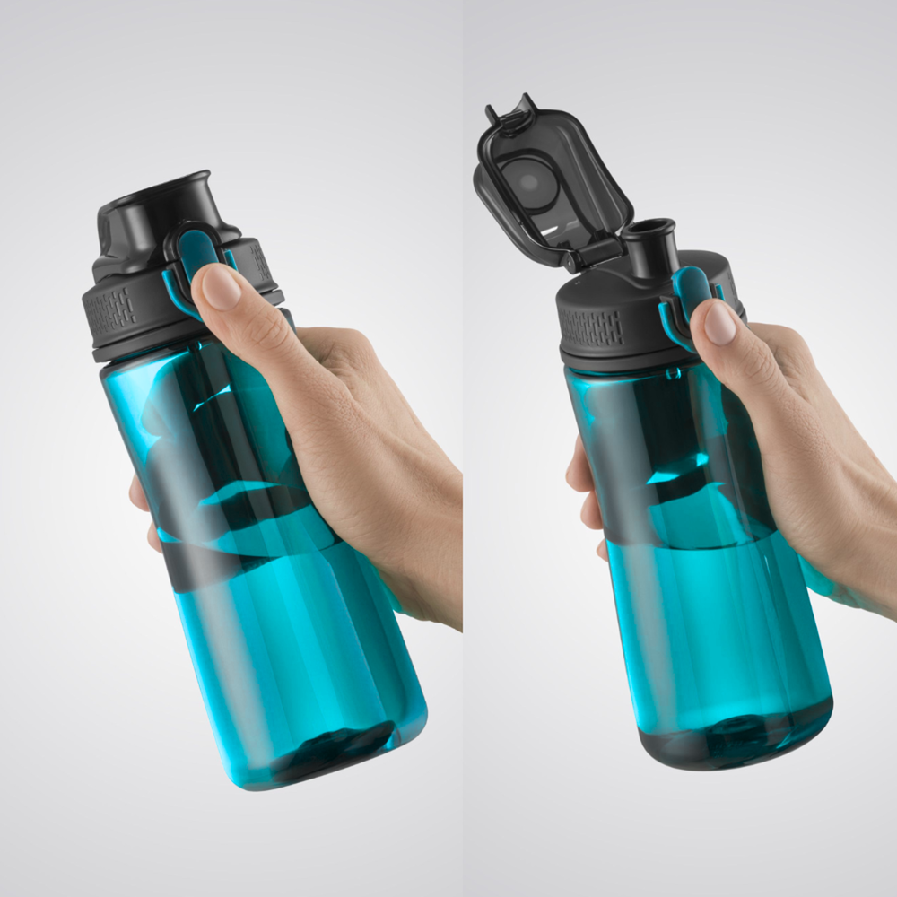 Neon water bottle is a stylish and functional solution for those on the go. The bottle is made of durable Tritan material, resistant to damage, and the leakproof cap is constructed from a combination of plastic and ABS, ensuring longevity. The innovative design includes a convenient one-click opening mechanism for quick and easy access to your beverage. When not using the bottle, you can lock the cap to prevent the contents from spilling. The wide opening allows you to put ice cubes inside. The bottle is also equipped with a material handle for convenience. The product is certified for food contact and is BPA-free. Dishwasher safe. Capacity: 580ml