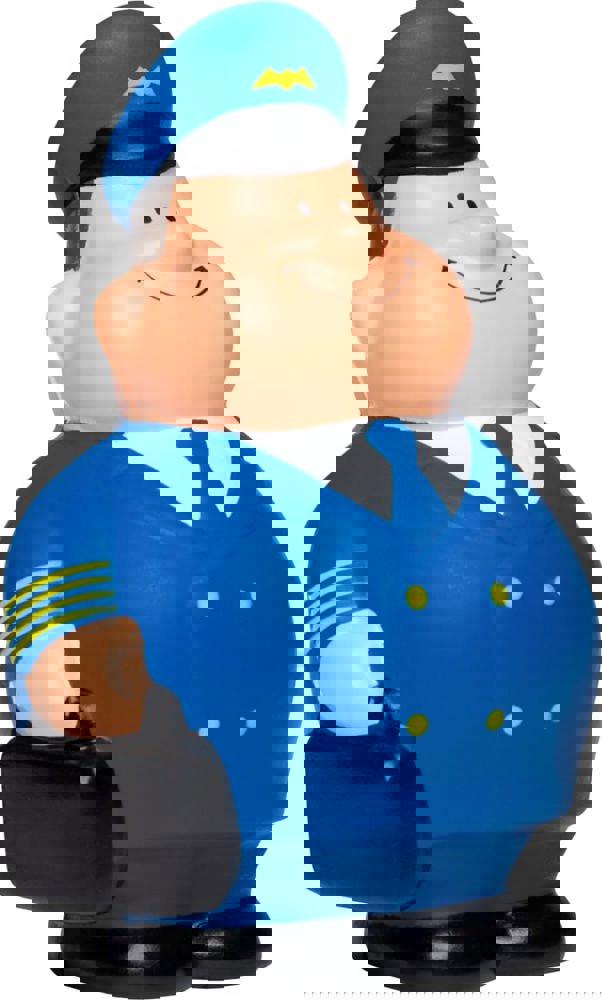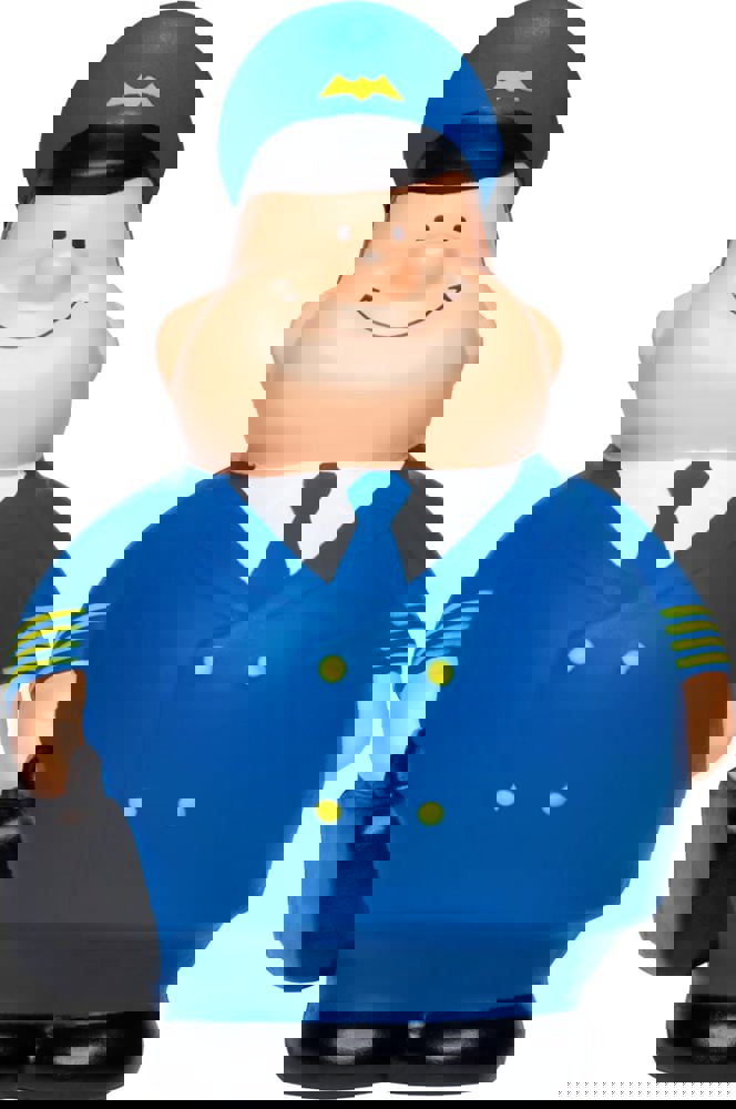 With our Pilot Bert® it is stress-free around the world. With the blue uniform, matching headgear and the sleek little case, he is always perfectly prepared for this. He's seen every corner of the world. Despite some stressful flight schedules, he always has a smile on his face. So that you can feel the same way: simply squeeze Pilot Bert® to reduce stress. Due to the material's properties, the product returns to its original shape.