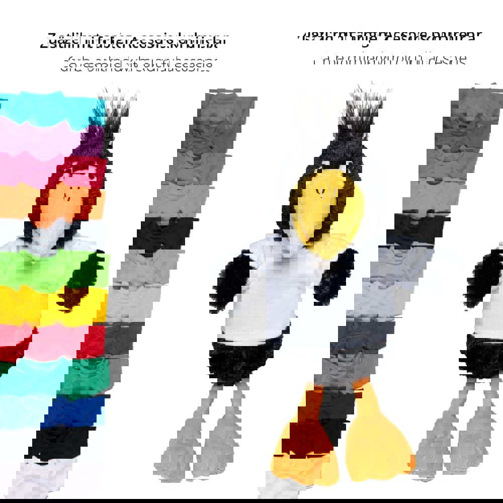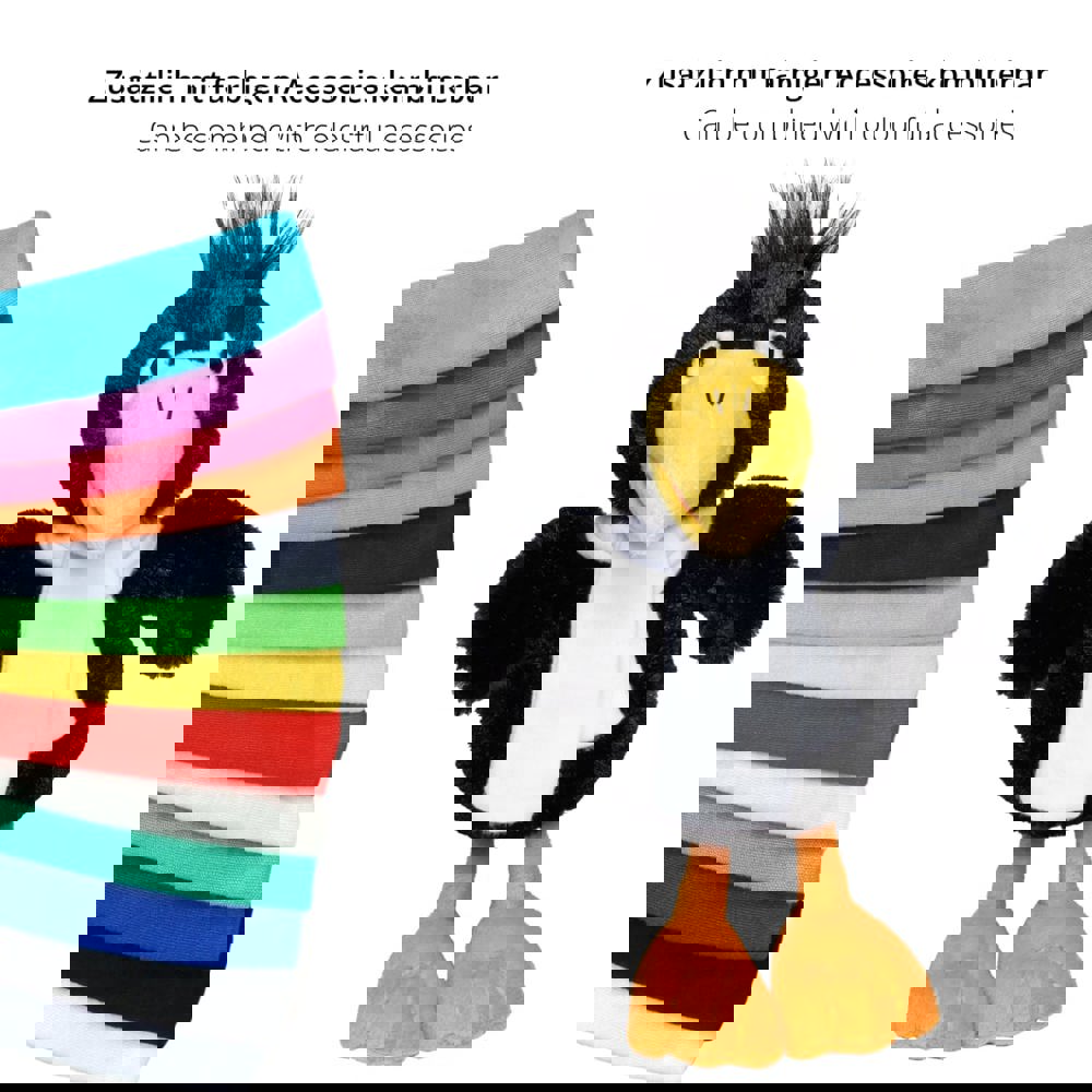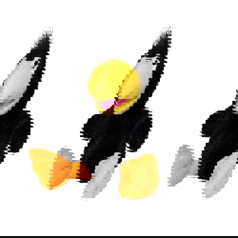 Our raven Karl looks much nicer than his wild relatives. Its plumage is certainly also more cuddly, but it shines like by the big ones. A special long pile plush creates a shimmering sheen. With excited Kraa, kraa, kraa, kraa, the cheerful raven invites you to play and cuddle.