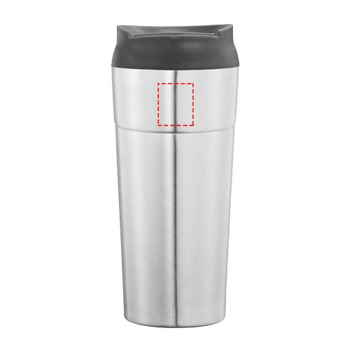 Dubbelwandige RVS beker in sprekende kleuren. Handige druksluiting met duimschuifje In de kleur van de beker. Inhoud 500 ml. Geleverd in geschenkverpakking.