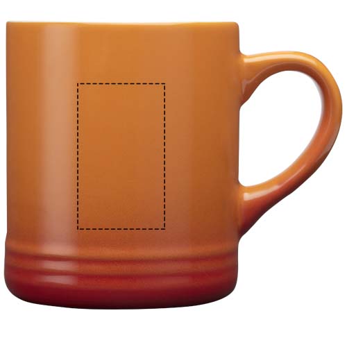 Keramische mok met een stijlvol ontwerp met een subtiel kleureffect. Heeft een glanzende crèmekleurige binnenkant en een glanzende buitenkant. Vaatwasserbestendig. Gepresenteerd in een gerecyclede kartonnen geschenkverpakking. Inhoud: 330 ml.