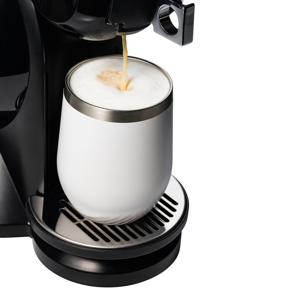 Stijlvol: De dubbelwandige beker met optimale warmhoud- en koelfunctie en transparante deksel in...meer
