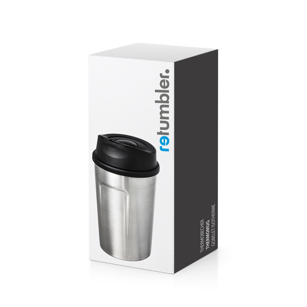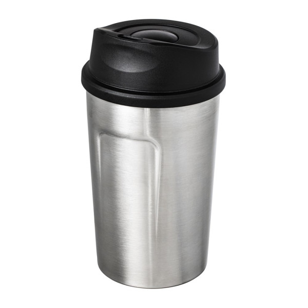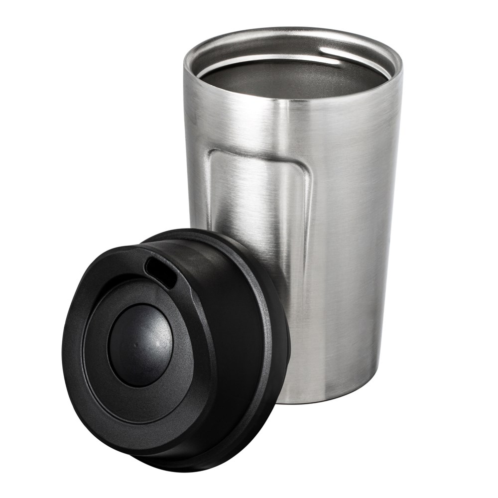 Bij deze dubbelwandige vacuüm isolatiebeker heeft men zich optisch laten inspireren door de klassieke Coffee-to-Go bekers. De buitenkant is gepoedercoat en heeft zodoende niet alleen een zeer aangename haptiek maar ook een verhoogde kras- en stootbestendigheid. Het deksel beschikt over een druksluiting. De inhoud bedraagt 380 ml: ideaal om de dag met een grote kop koffie te beginnen.