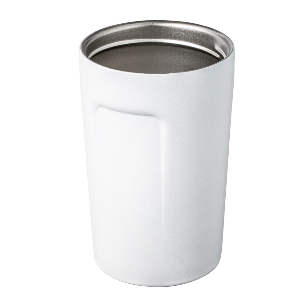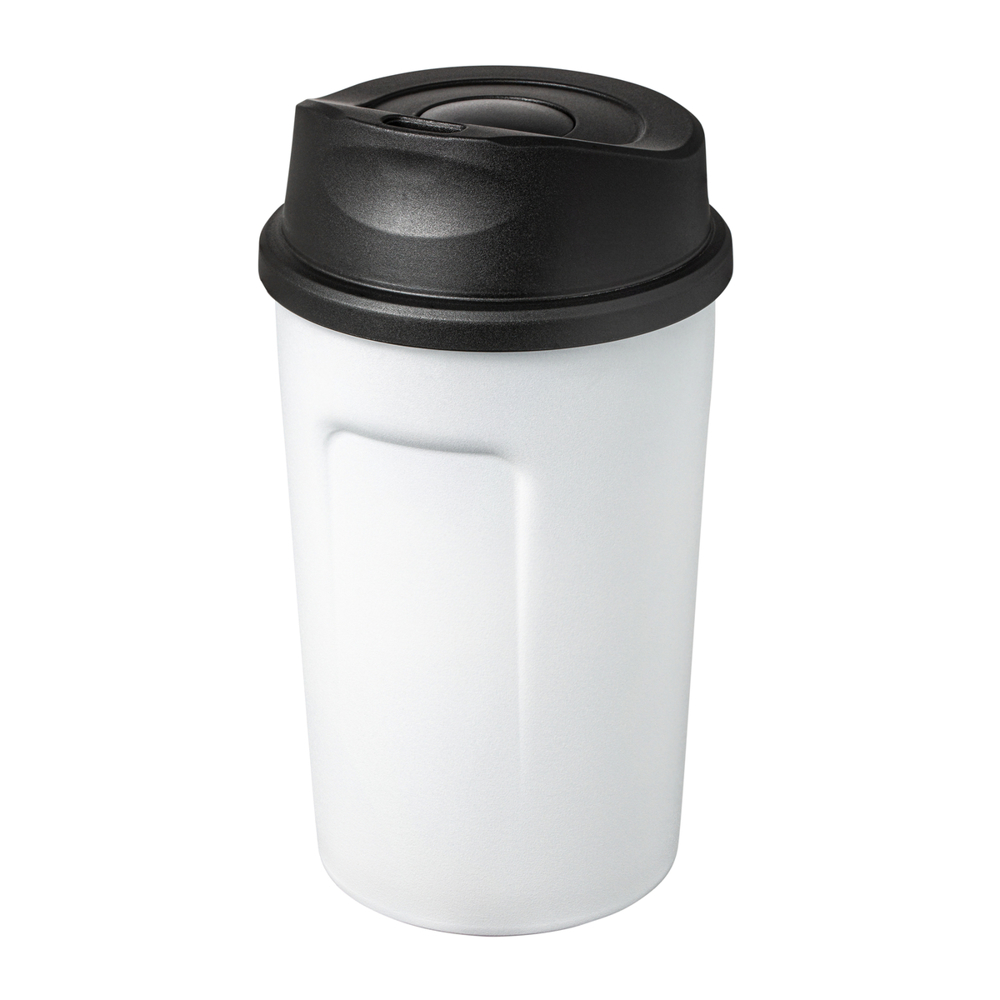 Bij deze dubbelwandige vacuüm isolatiebeker heeft men zich optisch laten inspireren door de klassieke Coffee-to-Go bekers. De buitenkant is gepoedercoat en heeft zodoende niet alleen een zeer aangename haptiek maar ook een verhoogde kras- en stootbestendigheid. Het deksel beschikt over een druksluiting. De inhoud bedraagt 380 ml: ideaal om de dag met een grote kop koffie te beginnen.