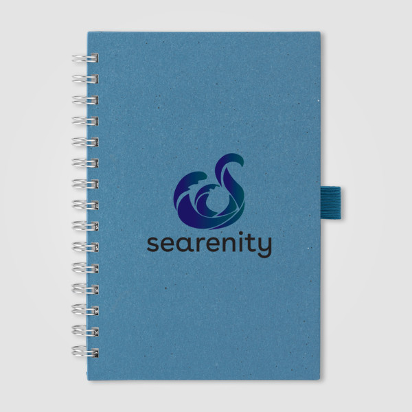 The Terra Recycled Milk Carton FSC Paper Spiral Notebook - A5 offers a unique cover made from 20% recycled milk cartons, giving it a distinctive, textured look with dots due to the recycled material. Inside, you'll find 80 sheets (160 pages) of lined, 80gsm Ivory paper, perfect for capturing notes or ideas. The notebook is spiral bound with a silver steel double spiral for easy page turning, and it features an elastic pen loop for added convenience.