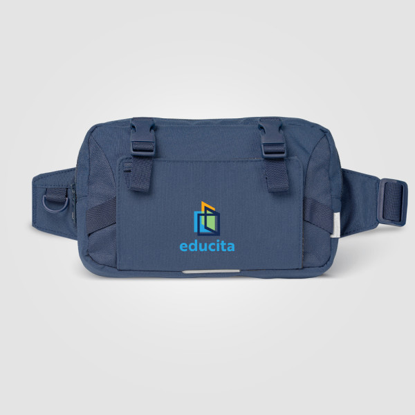 Discover the perfect blend of durability, functionality and contemporary design with our Coastal Threads™ Trek Pack. This multifunctional companion has been meticulously designed to enhance your adventures while making a positive impact on the resources available to the environment. The exterior of the belt pack is made from Repreve® 300D, a remarkable material that demonstrates our commitment to ecological choices. Inside, the pocket is lined with rPET 210D. The thread that sews the bag is harmoniously matched to its colour, navy or black.