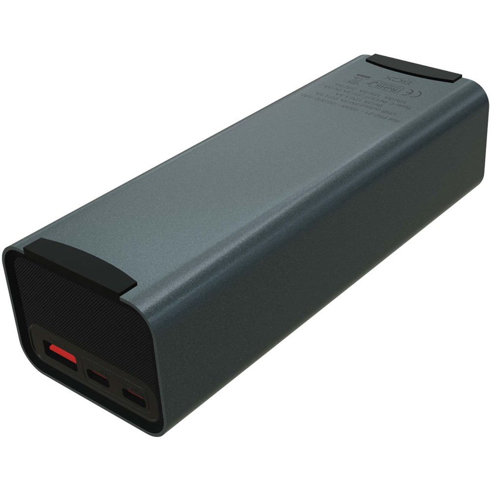 Krachtige laptop powerbank van 100 W (20.000 mAh) die onderweg meerdere apparaten kan opladen met de dubbele USB-C- en USB-A-poort. Met TFT smart display voor real-time batterijstatus. Verpakt in een gerecycled katoenen zakje en geleverd in een gerecyclede kartonnen geschenkverpakking.