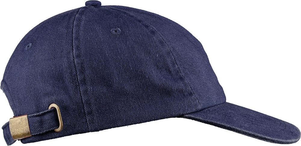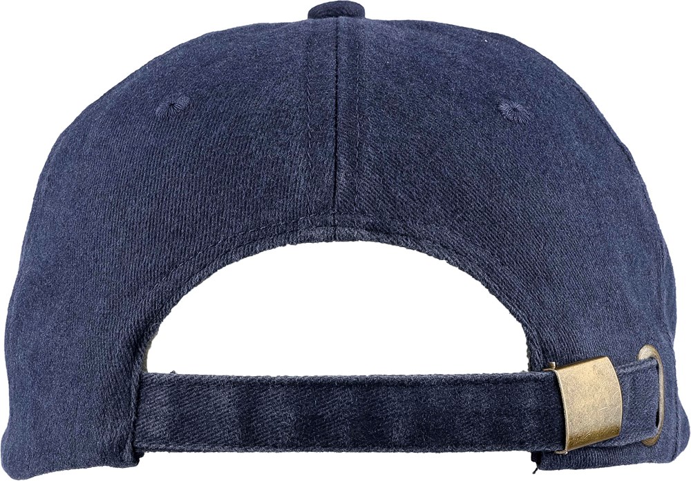 Katoenen (240 gsm) pet met een gewassen afwerking, voorzien van een 5-paneldesign en een 7 cm klep. Verstelbare pasvorm met een messing gespsluiting. Geen voering aan de binnenzijde.