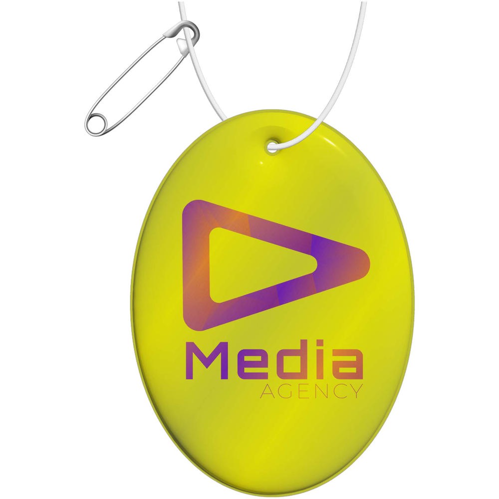Bevestig deze reflecterende hanger aan kleding, tassen of andere buitenspullen om de zichtbaarheid in het donker te vergroten. Door deze gecertificeerde hangers te gebruiken maak je verkeersveiligheid een kenmerk van je merk. De hangers worden geleverd met een wit koord en een veiligheidsspeld om eenvoudige te bevestigen. Verkrijgbaar in verschillende vormen en maten, en in witte of gele kleur. Voorzien van een fluorescerende RFX™ zachte reflecterende folie van ftalaatvrij PVC. Materialen zijn getest in overeenstemming met SVHC (zeer zorgwekkende stoffen) REACH-kandidaatslijst en zijn vrij van ftalaten. De hangers zijn CE getest en goedgekeurd volgens EN 17353 Type B 1. Elk item wordt geleverd met een 10 cm lange koord en een speld om het gemakkelijk aan een tas, jas etc. te bevestigen. Verpakt samen met een informatieblad in een zakje van glasine, een materiaal gemaakt van houtpulp Gemaakt in Europa.