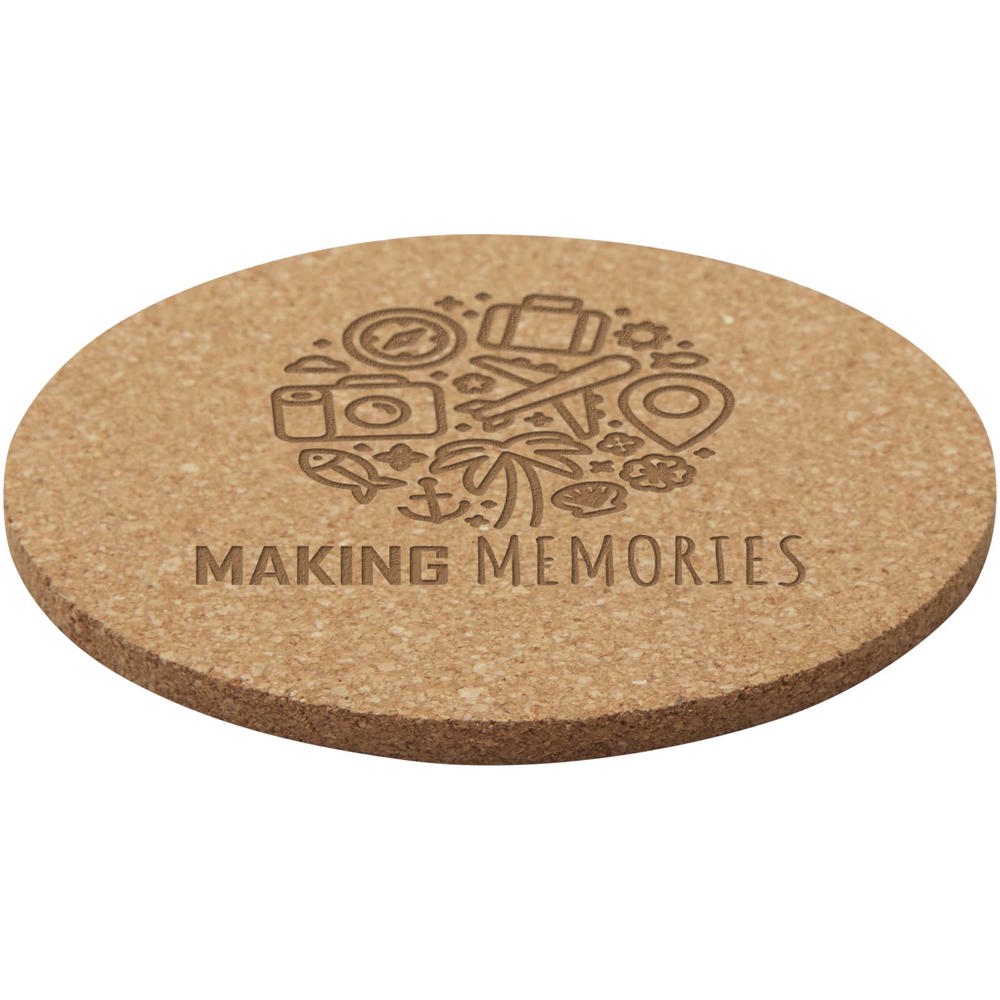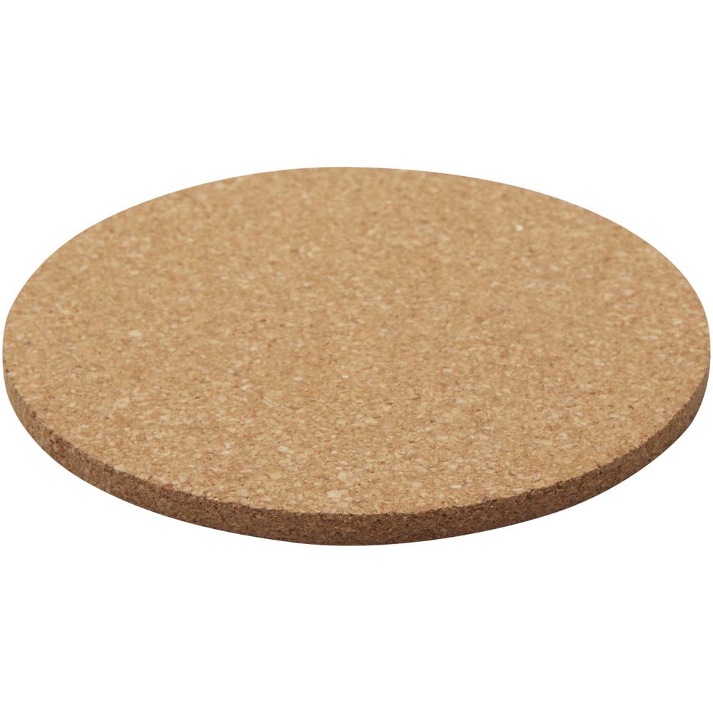 Ronde onderzetter van kurk afkomstig uit duurzamere en sociaal verantwoorde bronnen. Afmetingen: 10 x 0,5 cm.