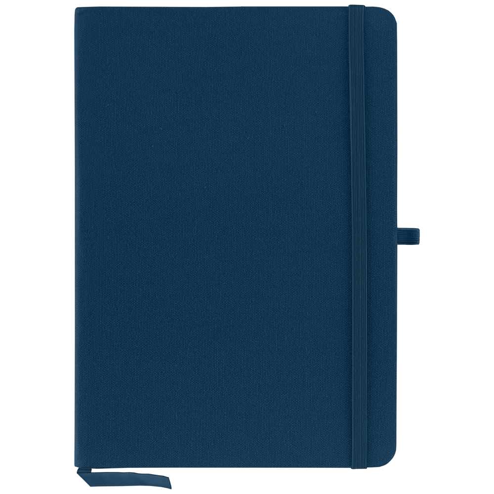 This Recycled Cotton Notebook features a recycled cotton cover and includes 80 ivory lined sheets of 70gsm recycled paper. The notebook is designed with a matching elastic strap, pen loop, and ribbon bookmark.