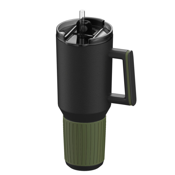 De grote beker die iedereen wil hebben! Deze trendy beker met handgreep, deksel en rietje is nu verkrijgbaar in een configureerbare kleurvariant. Maak van de 1.200 ml beker een visueel hoogtepunt: combineer een gekleurd siliconen accessoire aan de handgreep en optioneel een gekleurde siliconen sleeve om het taps toelopende onderste deel van de beker.