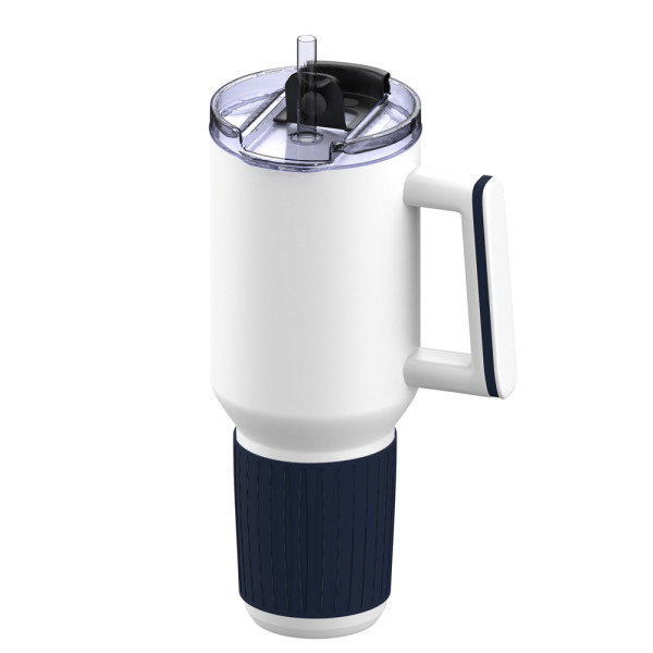 De grote beker die iedereen wil hebben! Deze trendy beker met handgreep, deksel en rietje is nu verkrijgbaar in een configureerbare kleurvariant. Maak van de 1.200 ml beker een visueel hoogtepunt: combineer een gekleurd siliconen accessoire aan de handgreep en optioneel een gekleurde siliconen sleeve om het taps toelopende onderste deel van de beker.
