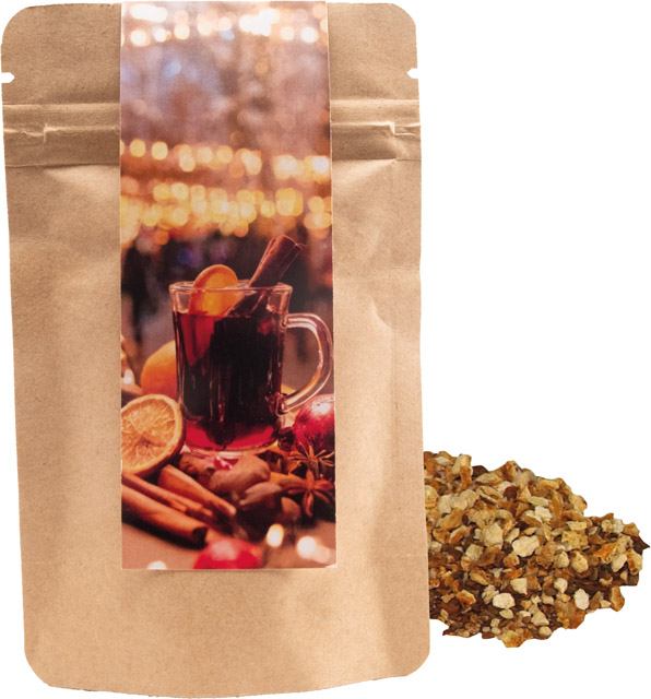 Our glogg condiment with the aromatic spices cinnamon, lemon peel and cloves gives your hot drink a wintery flavour and puts your customers in the Christmas market mood. You may use the standard design for your advertising. Your personalisation of the header starts as well with 250 pieces.