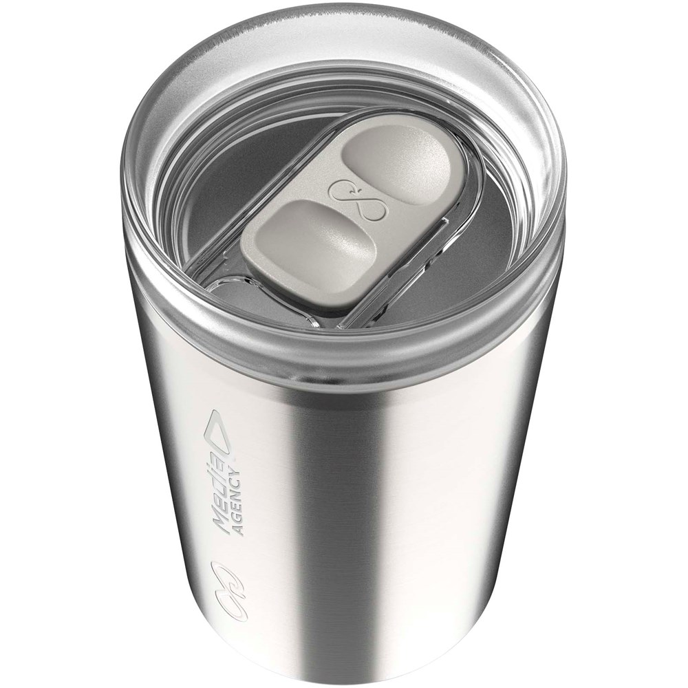 De Ocean Bottle beker van 350 ml heeft dubbelwandige isolatie om dranken tot vier uur warm en tot...meer