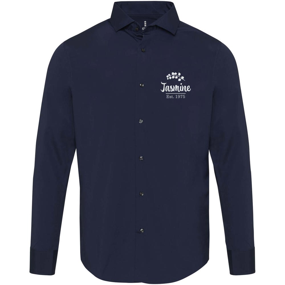 Carnelian heren poplin overhemd met lange mouwen. Moderne elegantie gecombineerd met extra draagcomfort. Gemaakt van BCI-gecertificeerd katoen met stretch, met een fijn 30-denier tweedraads gesponnen structuur voor een gladde, duurzame en luxe uitstraling. De lichte poplin binding geeft een frisse, strakke look. Regular fit voor bewegingsvrijheid en comfort. Voorzien van een klassieke rechte kraag, ideaal voor werk en casual gebruik.