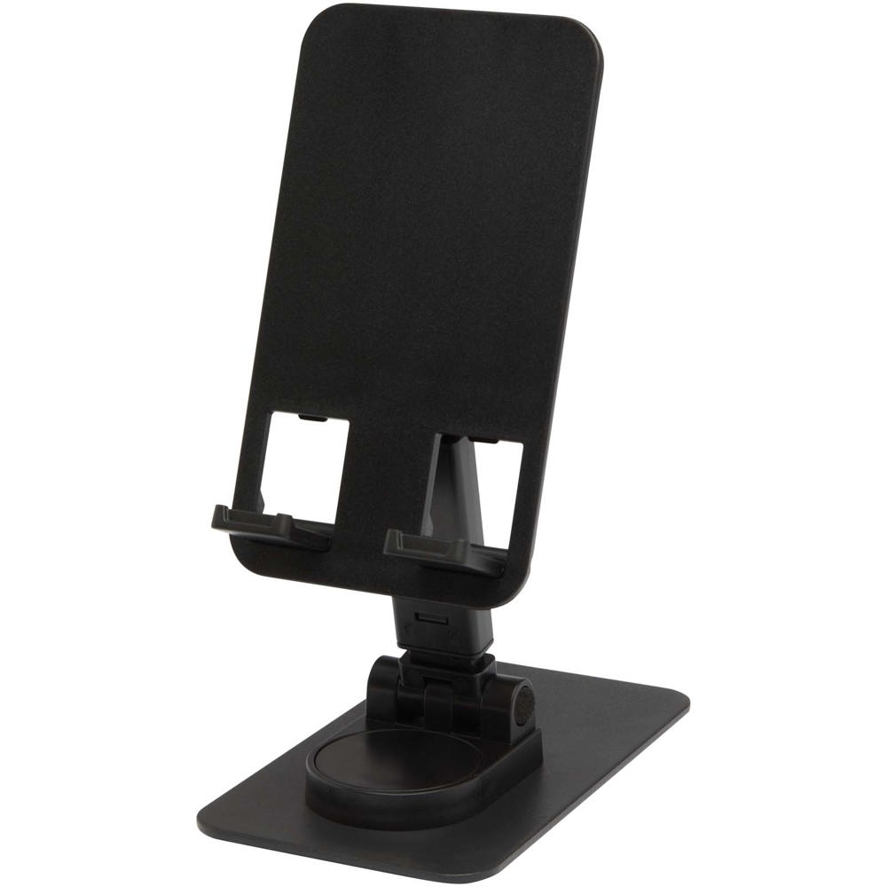 Alhena opvouwbare telefoonhouder van gerecycled plastic met metalen bureaustandaard