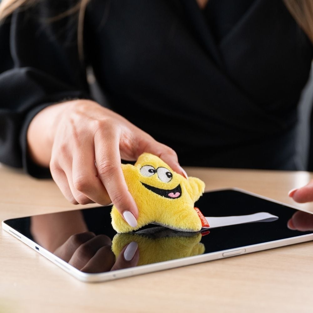 The Schmoozies® Star makes your brand shine! With its charming design, it not only keeps screens clean thanks to the microfibre underside but also lights up any workspace. With a logo or slogan on the branding label, it becomes a perfect promotional tool with added value, as Schmoozies® Star combines practicality with charm and an advertising message.
