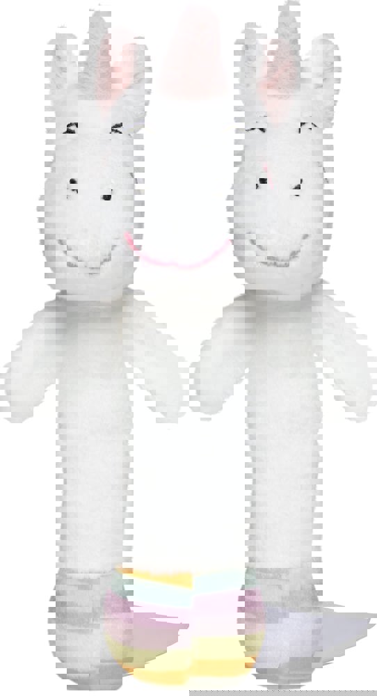 This little unicorn grab toy delights with soft materials, charming details and a shape designed for small hands. It encourages babies to explore their surroundings with all their senses – in a playful and safe way. Thanks to the branding label, your advertising message can be displayed subtly and emotionally. Of course, the toy is certified according to OEKO-TEX® STANDARD 100 (A08-0261 Hohenstein HTTI, oeko-tex.com/standard100). All components have been tested for harmful substances and are particularly suitable for sensitive baby skin.