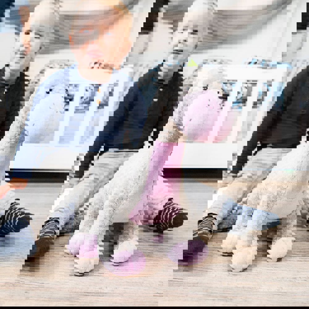 The dinos are coming! The first representatives of prehistoric times have arrived in the MiniFeet® world. Big and small dino fans love the cuddly soft fur of Dino Tino. The little giant is just the right companion for time travel and other adventures. This cute little guy will bring lots of joy, either as a sweet gift item or promotional gift.