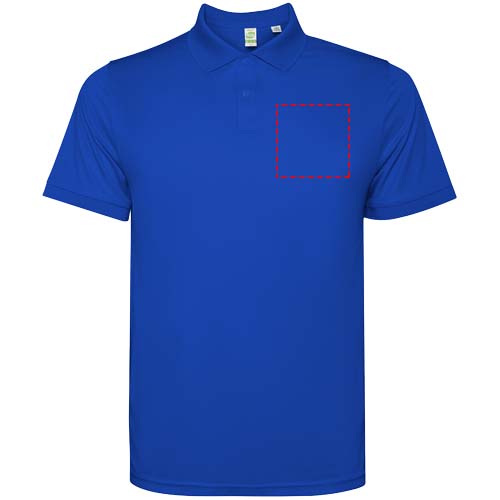 Herenpolo met korte mouwen. Versterkte bedekte naden in de binnenkraag. 1x1 geribde manchetten en kraag. Zijnaden. Knoopsluiting met 3 knopen en zijsplitten.