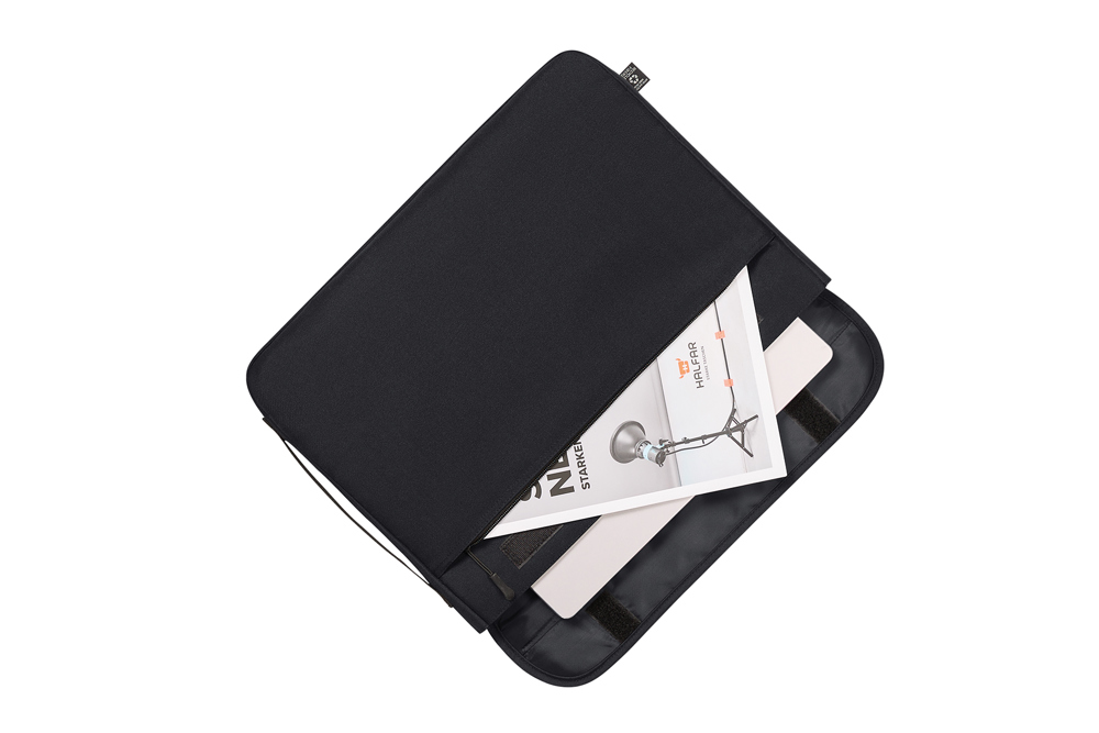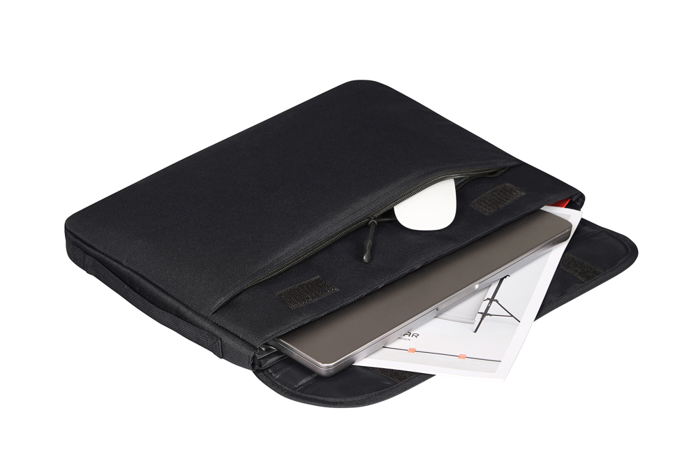 elegante laptophouder van gerecycled materiaal; gewatteerd hoofdvak; gewatteerde klep met...meer
