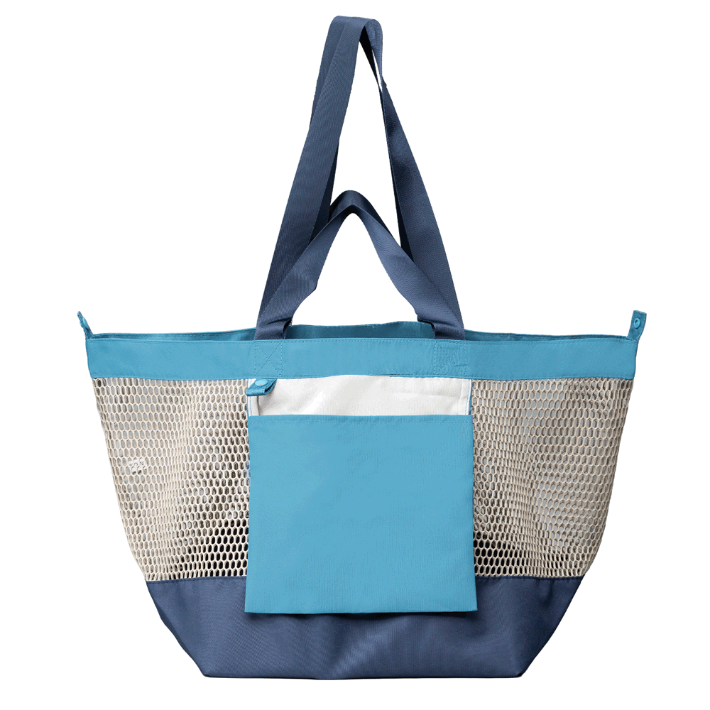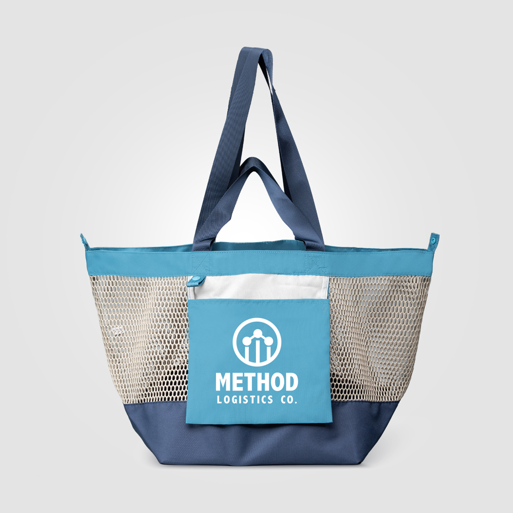 **Coming soon – Early April** This Neri Tote is an innovative, multi-purpose bag that combines trend-driven design with ultimate practicality. This spacious 45 litre tote is crafted from durable 300D recycled content polyester with a striking mesh main body and solid colour block panels. The foldable functionality is a key feature: the bag neatly stores into its own front pocket, keeping your logo visible whether the bag is open or folded. It offers versatile carrying with dual handles (short and long). Perfect for grocery shopping, daily errands, or as a beach bag, the Neri's large-capacity, foldable design makes it an ideal reusable bag for any need.