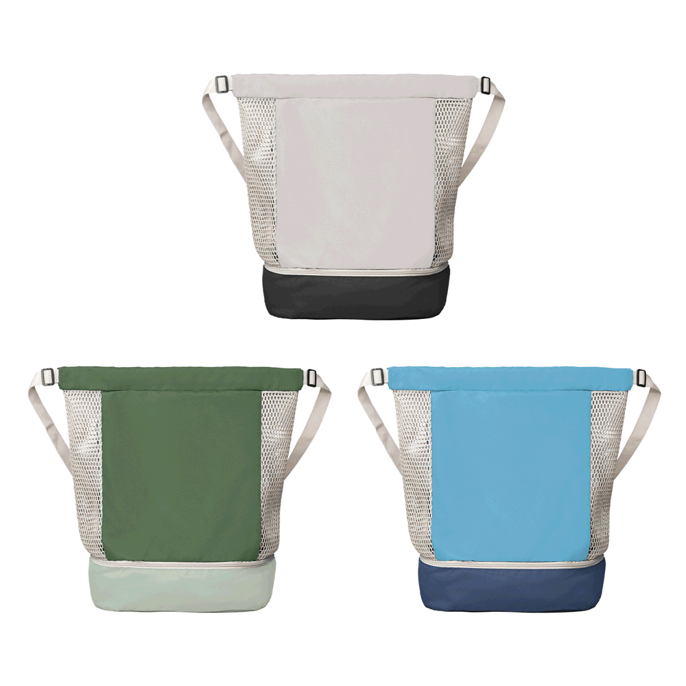 **Coming soon – Early April** Our Neri is a versatile and innovative bag perfect for sports, travel, and daily use. This 34 litre drawstring bag is made from durable 300D 100% post-consumer recycled polyester with PU backing, featuring breathable mesh panels on both sides. The key feature is the zippered compartment at the bottom, which creates a separate storage area ideal for keeping gym shoes, wet clothes, or travel items organised and separated from the main contents. The bag's soft, light construction and modern design make it a great mid-range option that combines practical functionality with conscious materials.