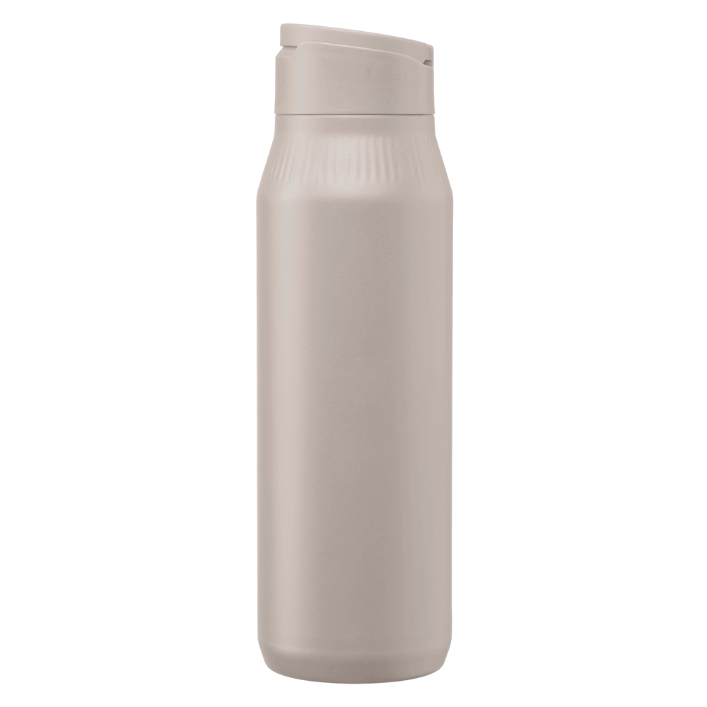 **Coming soon – Early March** Stay hydrated and capture the perfect moment with the innovative and tech-savvy Selfie Stand Bottle. This 750 ml (25 oz) bottle, part of the Majesty Collection, is crafted with double-wall vacuum insulation using 90% post-consumer recycled content stainless steel (304 RSS inner, 201 SS outer), engineered to keep drinks hot or cold for up to 15 hours. Its most innovative feature is the lid design, which features a dual-function magnetic holder that secures a mobile phone for taking photos, making it a perfect selfie stand, while also functioning as a secure carrying handle. The bottle's powder-coated finish and textured neck ensure a reliable and robust base that won't tip. This leakproof bottle is BPA-free and offers a premium, high-tech way to carry your beverage.