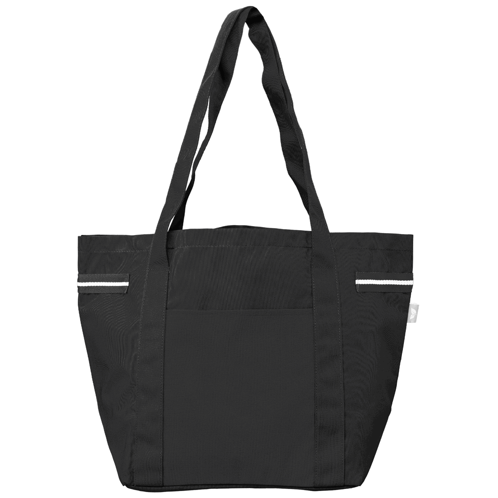 **Coming soon – Late February** Need an adaptable bag? The Newport Tote blends classic style with a modern look. This 20 litre tote's panels and webbing are made from durable 100% post-consumer recycled 600D polyester (rPET). It features the popular shape and is accented with a distinctive webbing stripe detail on the strap, adding a touch of unique style. The versatile bag is perfect for everyday use, featuring a front slash pocket for easy access to essentials. Complete with a Digital Product Passport and sewn-in QR code tag, this tote is positioned as a medium-price-range item that appeals to a broad audience looking for a stylish, functional, and conscious carryall.