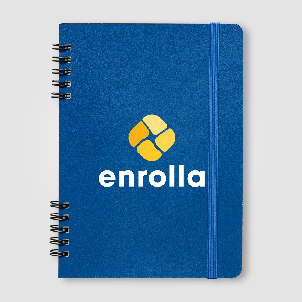 **Coming soon – Mid April** Meet the Jora Notebook, a stylish choice for your notes. This A5 notebook features a durable hard cover made from polyurethane and is held together by a sturdy black metal spiral binding. The unique spiral design is split into two parts, and its size allows you to easily fit a pen within the binding for convenience. Inside, the notebook contains 80 sheets of 80 gsm FSC®-certified lined white paper, ensuring every page supports responsible forestry. A matching colour elastic band closure keeps the notebook secure when you're on the go, making this a functional and conscious option.