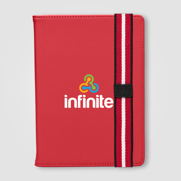 **Coming soon – Late March** The Newport Refillable Journal is a complete, sophisticated package for taking notes. The cover is made from PU that has at least 50% post-consumer recycled content, with a luxurious suede interior lining. Its distinctive feature is the chevron weave strip sewn onto the elastic closure, providing a stylish accent and keeping the journal securely closed. Functionality is key: the inner structure is refillable, and the cover features a document pocket on the left side and a pen loop conveniently placed in the centre. Included is an A5 notebook with 80 sheets of 70gsm FSC®-certified lined paper, ensuring this journal is as practical for long-term use as it is stylish.