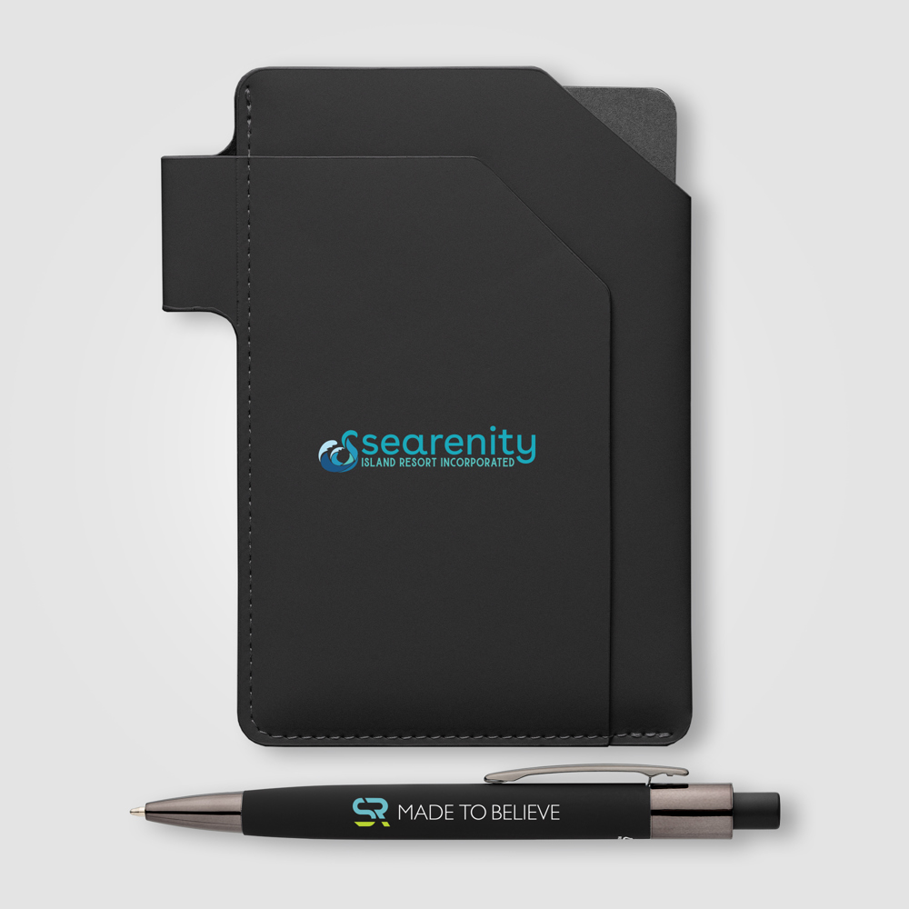 **Coming soon – Early March**Put pen to paper with the Malmö Set, a stylish and practical accessory for travel and organisation. This combo includes the Passport/Notebook Holder and a coordinating pen (model #JCD), delivered in either Dune or Black. The holder is crafted from PU (polyurethane), mirroring the refined texture of the Malmö collection. Sized at 15.8 cm × 12.0 cm, it is perfectly suited to secure a passport, with an extra front flap to hold essential documents. An integrated PU pen loop is positioned on the left side to keep the included pen readily available for filling out forms. The cover features a clean, sewn finish with matching thread colour, and the top is open with a neat diagonal cut on the right side for easy access. Inserted into the holder is an A6-size notebook featuring 32 sheets (64 pages) of smooth, 70gsm lined white FSC® paper sourced from responsible forestry.