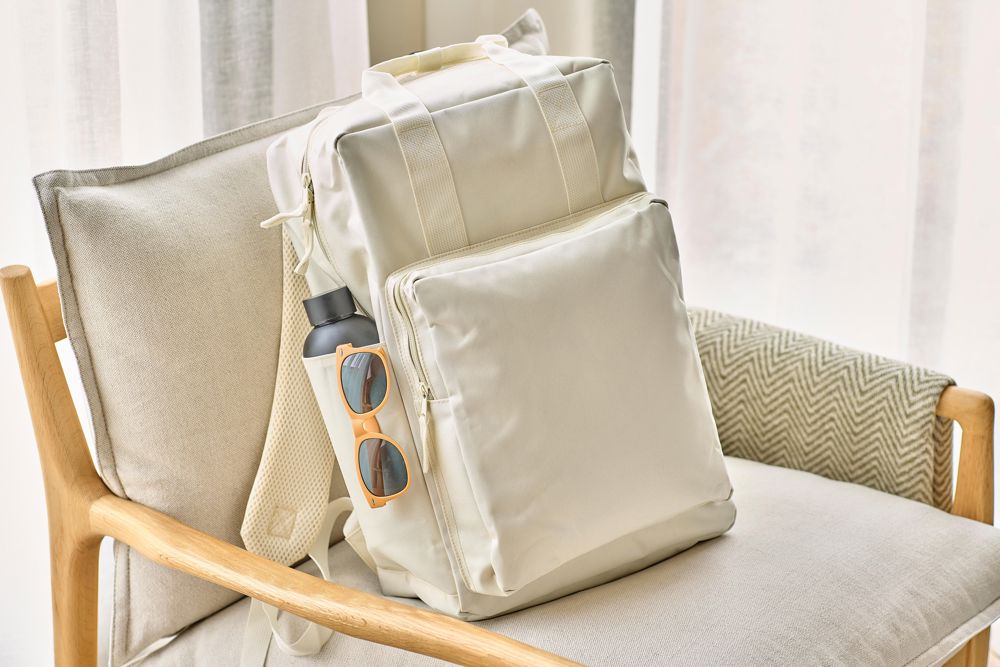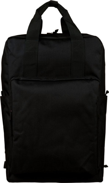 Rugzak van gerecycled 900D polyester met 210D voering en rPET-label aan de zijkant. Voorzien van een groot hoofdvak met ritssluiting en 16-inch laptopvak, kleiner voorvak met ritssluiting, twee zijvakken en een trolleyband. Inclusief handgrepen met drukknoopsluiting en verstelbare, geventileerde schouderbanden.