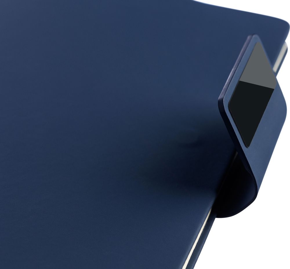 Kartonnen kantoorcadeauset bestaande uit een gerecyclede aluminium draaibalpen met blauwe inkt en een gerecycled PU-notitieboek met 80 vellen papier (70 gsm), gelinieerd. Het notitieboek is voorzien van een lintbladwijzer en een metalen magnetische sluiting met een donkergrijs gegraveerd plaatje. Ook de draaibalpen is voorzien van een donkergrijs gegraveerd plaatje. Beide items bevatten een gerecycled logo: in reliëf op het notitieboek en gegraveerd op de pen.