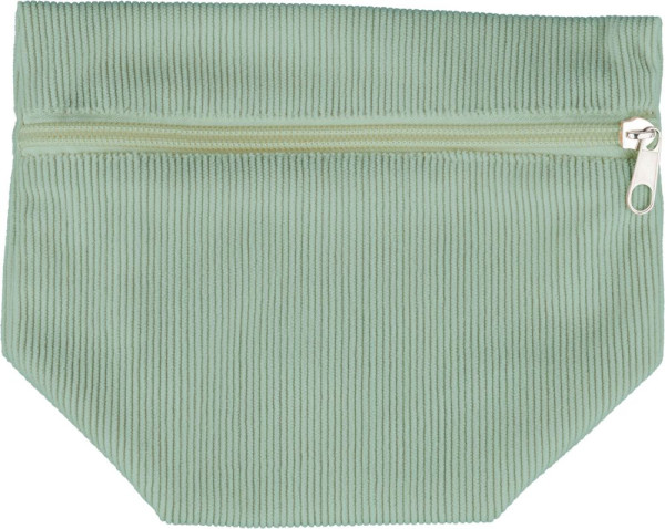 Corduroy toilettas met één hoofdvak en veilige ritssluiting.